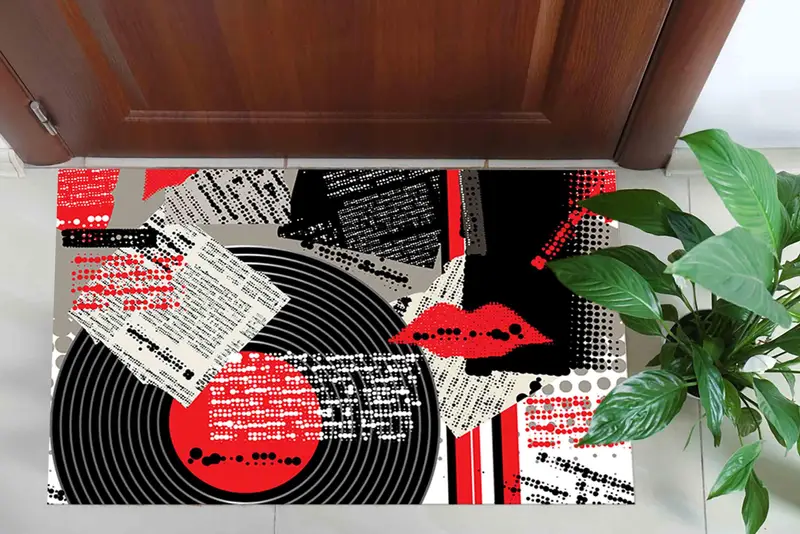 レッド&ブラックのモダンプリントラグ: 女の子の部屋のためのトレンディなグレーのデザイン