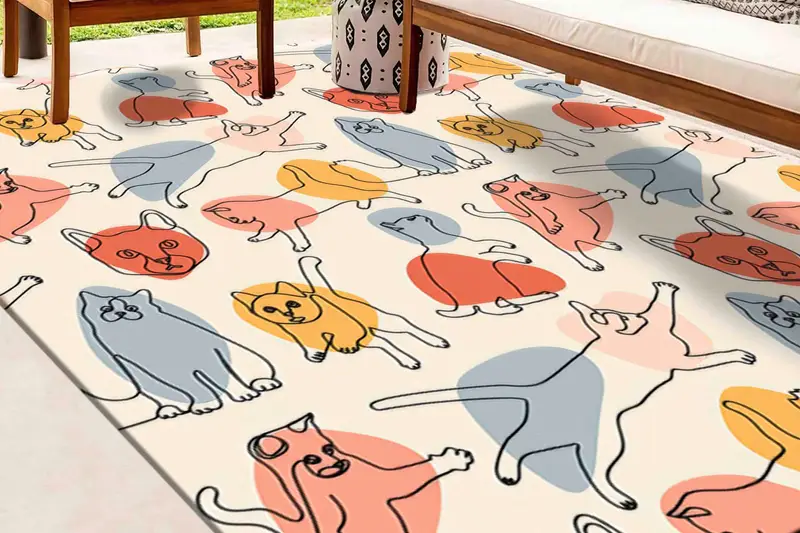 ミニマルなボヘミアン猫好きプリントラグ、オレンジとイエロー