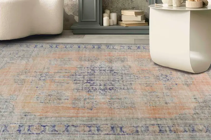 メダリオンプリントラグ:ヴィンテージ色あせたエスニックパターン装飾