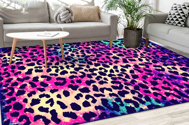 ピンクヒョウのモダンなプリントラグ - 鮮やかでシックな室内装飾