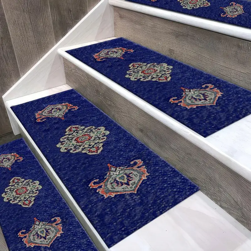 エスニックメダリオンステップラグ、プリントOushakデザイン、落ち着いたボヘミアン装飾