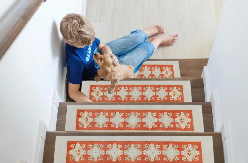 グレー & オレンジ 幾何学模様 エスニック アステカ ボヘミアン プリント ラグ