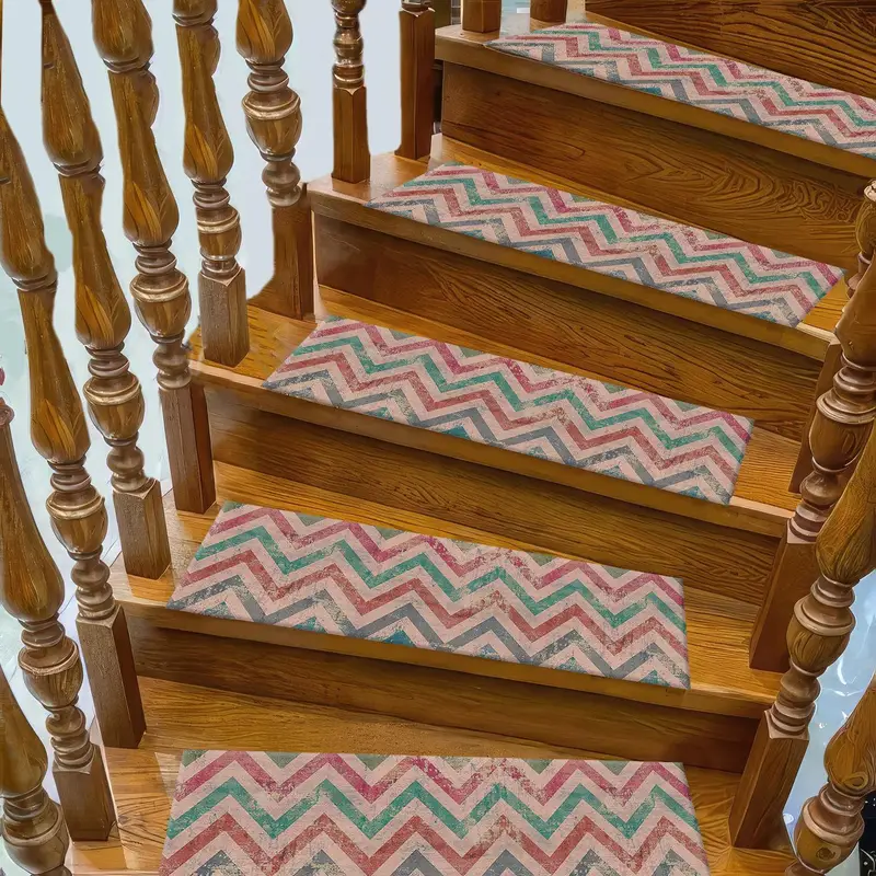 幾何学模様プリントラグ エスニックデザインステップラグ