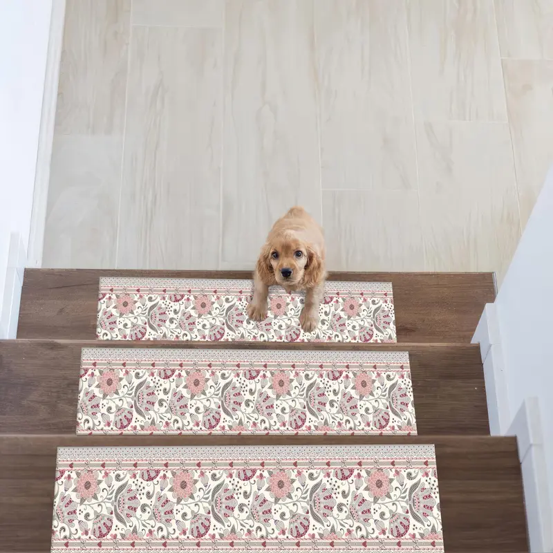 ピンクの花柄ファームハウスキリムプリントステップラ...