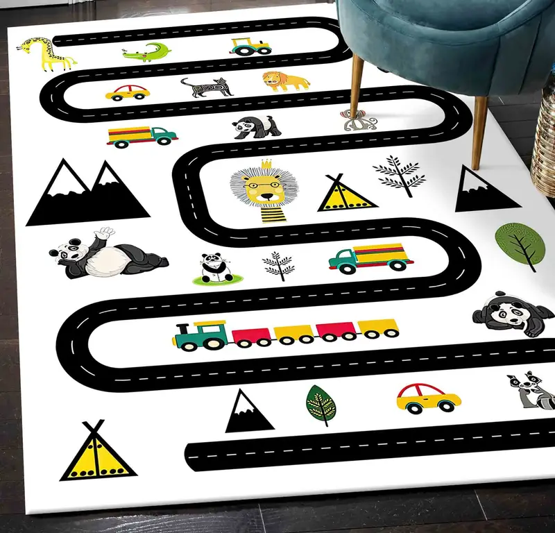 気まぐれなかわいい動物プリントラグ、子供のプレイルームの装飾用