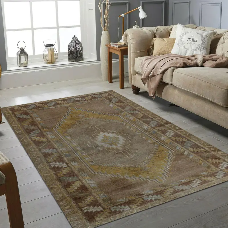 ヴィンテージメダリオンプリントラグ - エスニックパターン&ソフトファブリック