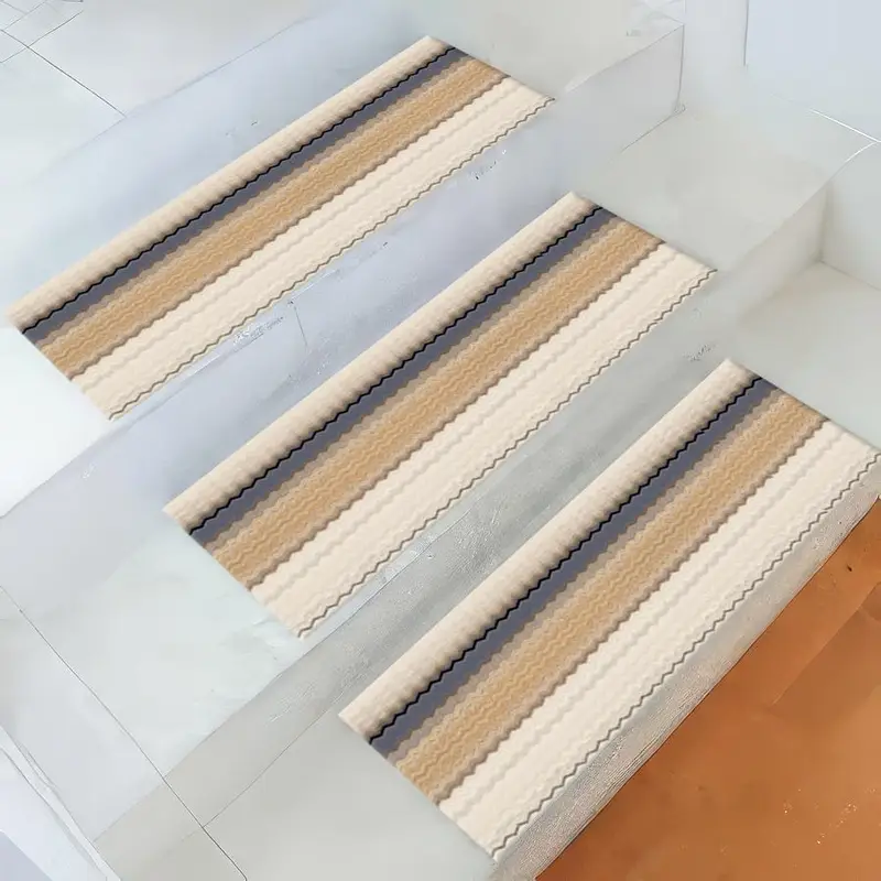エスニックボヘミアンデザインのベージュキリムプリントステップラグ