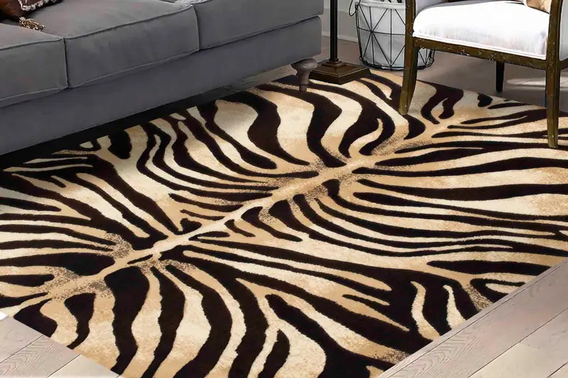 ゼブラ柄モダンプリントラグ、抽象的なブラック&ブラウンデザイン