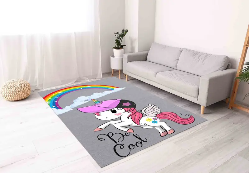 レインボーかわいいユニコーンプリントラグ、子供用、柔らかい寝室の装飾