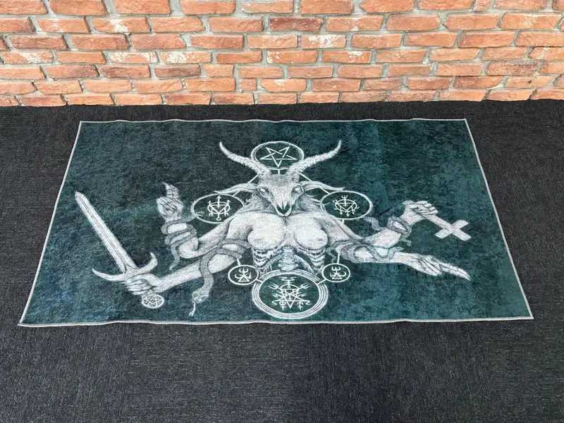 悪魔のようなブラックホラープリントラグ: モダンなゴシックデザイン