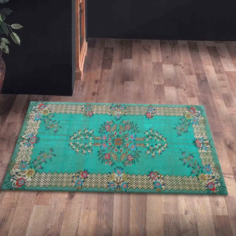 フローラルメダリオンプリントラグ - ヴィンテージエスニックグリーンローズデザイン