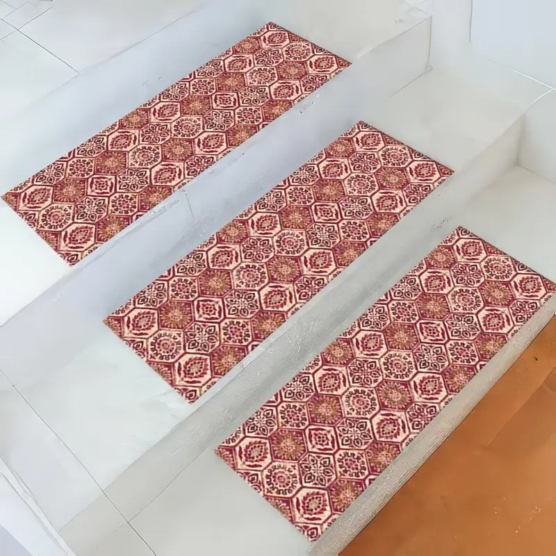 レッドキリムプリントラグ:ボヘミアンファームハウスエスニックデザインステップラグ