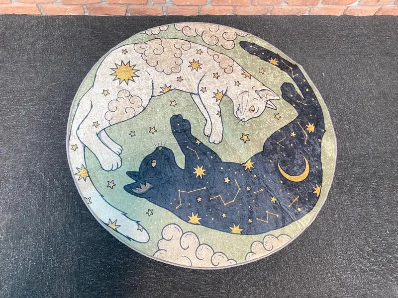 ラウンド ボヘミアン キャット ラバー プリント ラグ: モダンな抽象デザイン