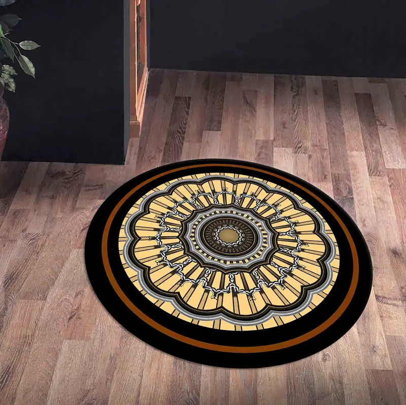 ブラックマンダラパターンラウンドプリントラグ、モダンサークルデザイン