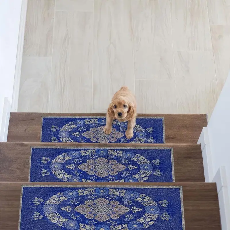 ブルー メダリオン プリント ラグ: モダンな住宅のための色あせたエレガンス