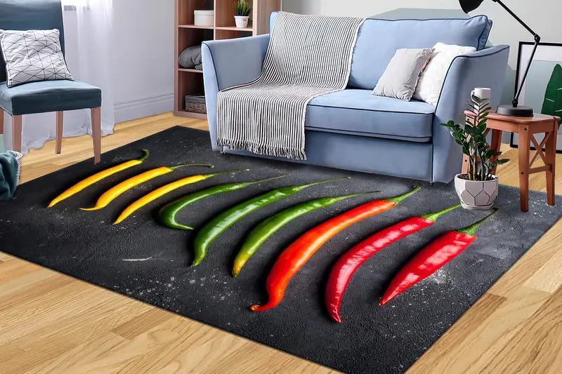 幾何学模様のペッパー プリント ラグ: ダイニング ルームのためのモダンなデザイン