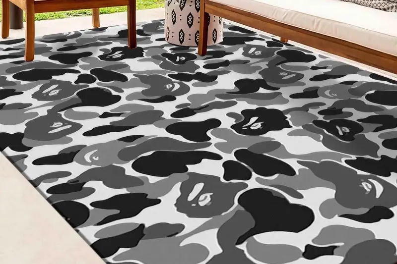 モダンなロフト装飾用のブラック & グレーの抽象パターン プリント ラグ