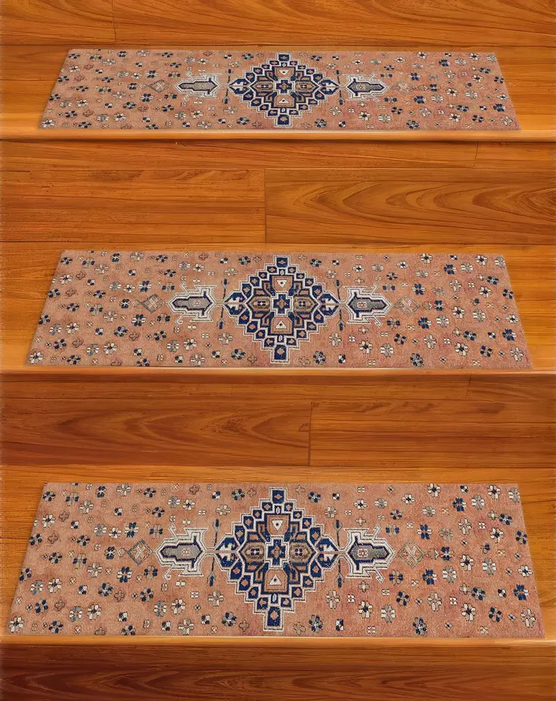 オレンジ & ネイビー メダリオン ステップ ラグ...