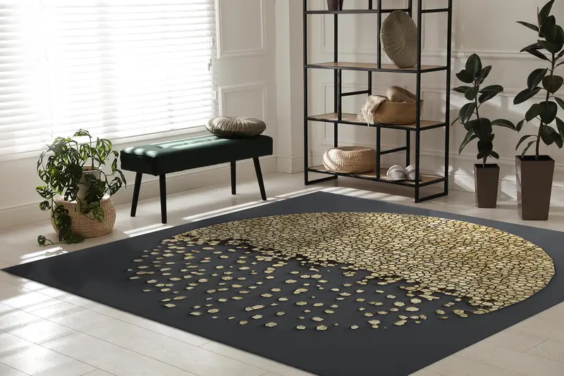Golden Hue モダンプリントラグ - 高級ブラックファッションデザイン