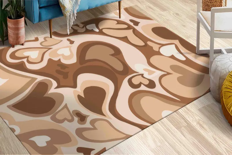 女の子の部屋用ハート柄ブラウン&ベージュプリントラグ