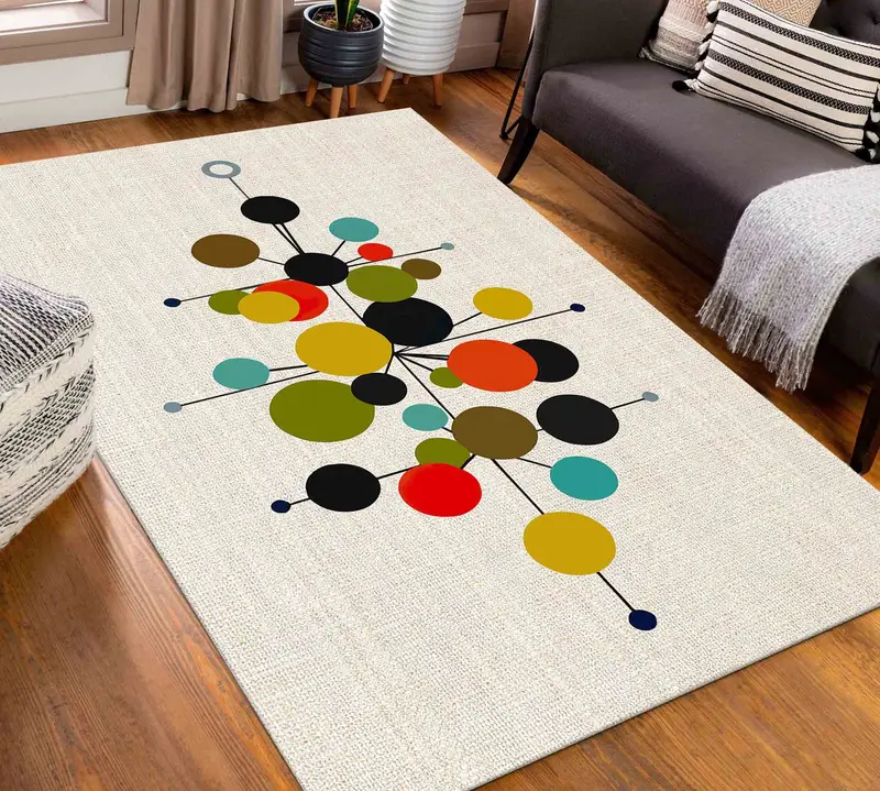 ミニマリストパターンプリントラグ、モダンなボヘミアンデザイン、ホームオフィス用
