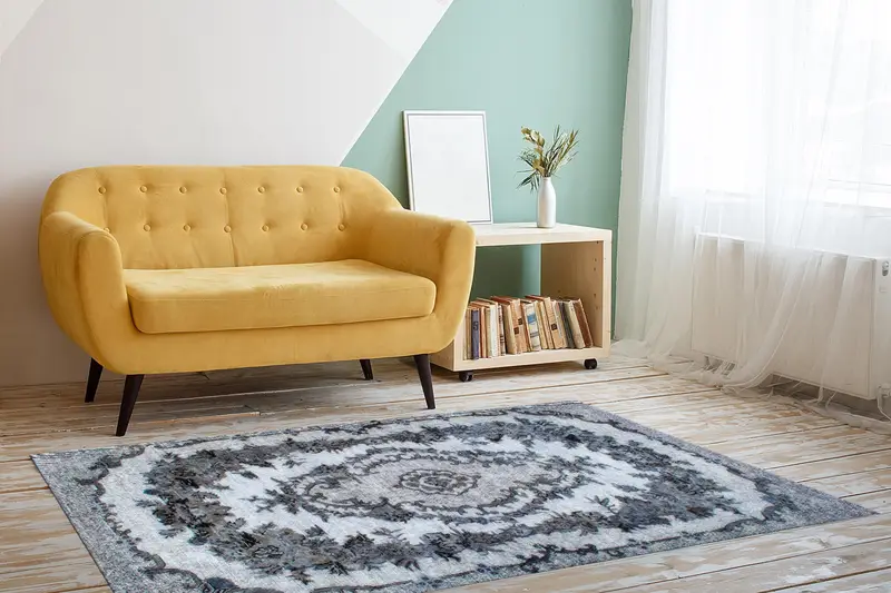 ヴィンテージメダリオンプリントラグ: エスニック&花柄、ソフトタッチ