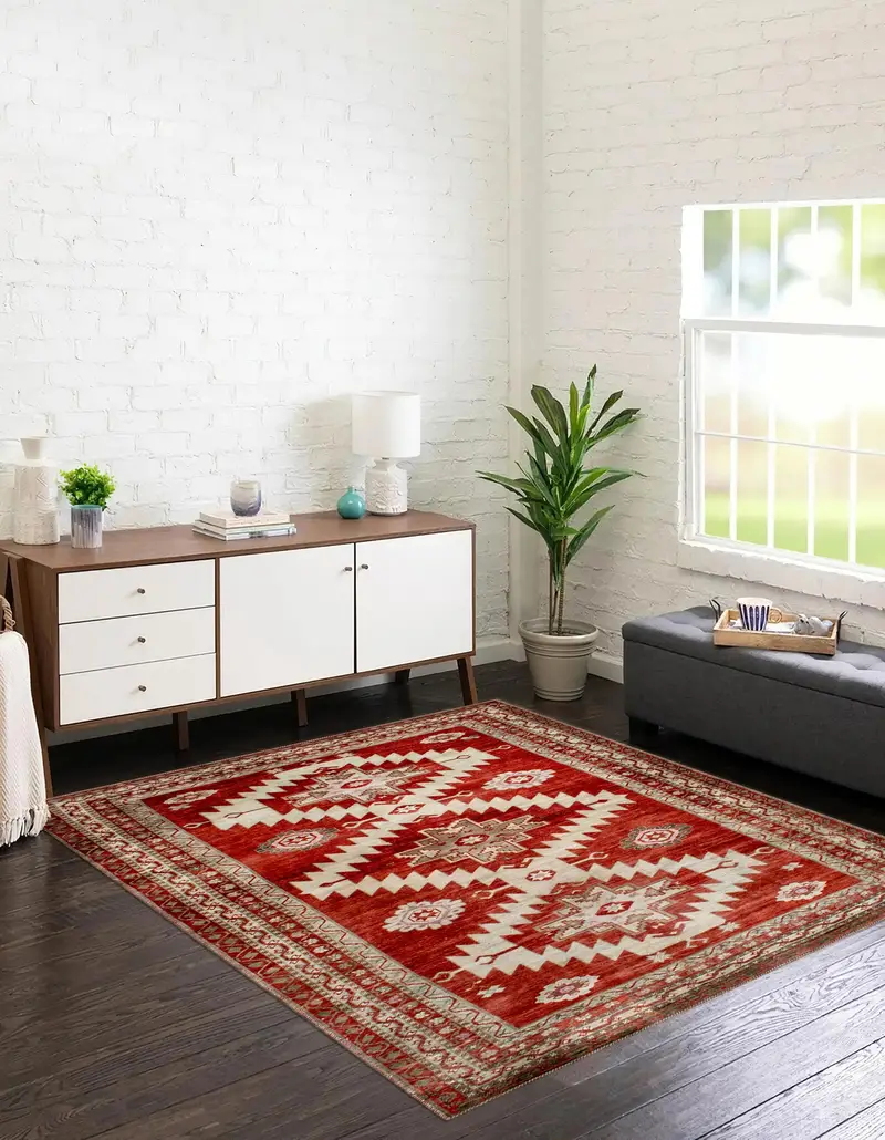 ヴィンテージナバホプリントラグ:エスニック幾何学模様、ソフトな質感