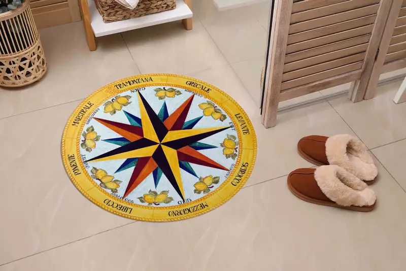 コンパスラウンドプリントラグ - モダンでトレンディなヨットデザイン