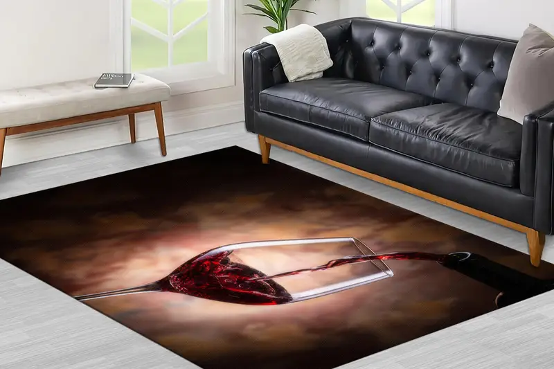 注ぐワイングラスプリントラグ、モダンアート、キッチン、ダイニングルーム用
