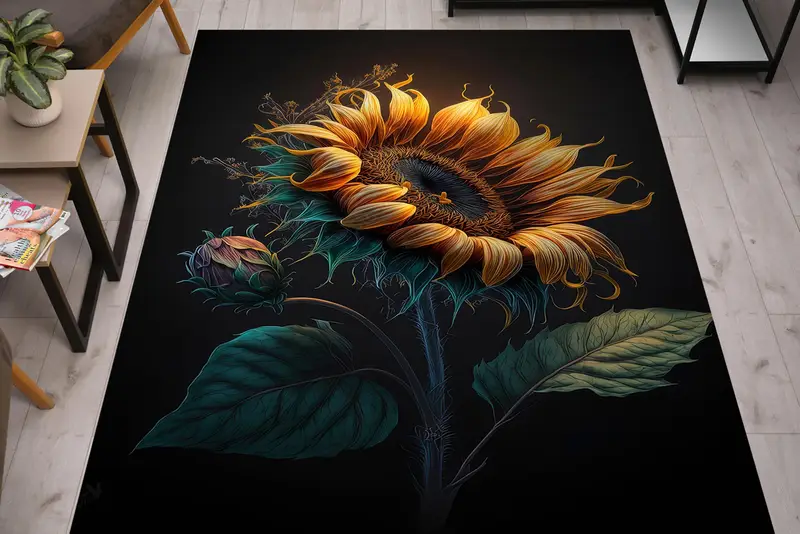 ひまわりのアニマル柄ラグ: モダンなキッチンアクセントピース