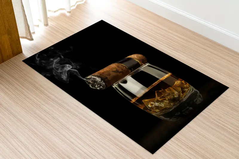 葉巻をイメージしたプリントラグ: マンケイブオフィスのファームハウスチャーム