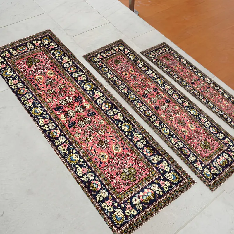 ステップエリア用ピンクトルコエスニックデザインプリントラグ