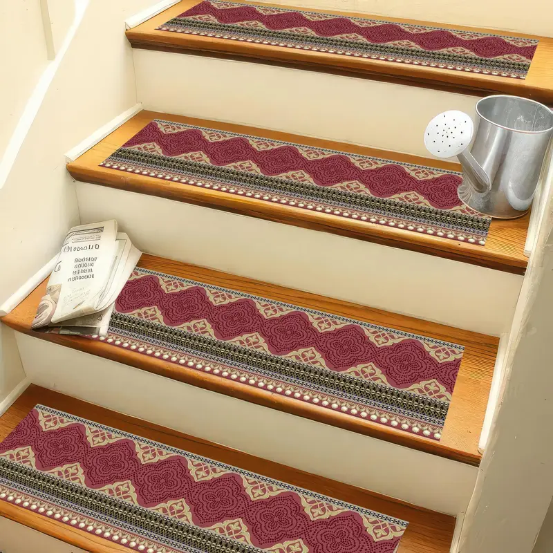 ダークダスティローズエスニックアステカプリントステップラグ、ボヘミアンシックなデザイン