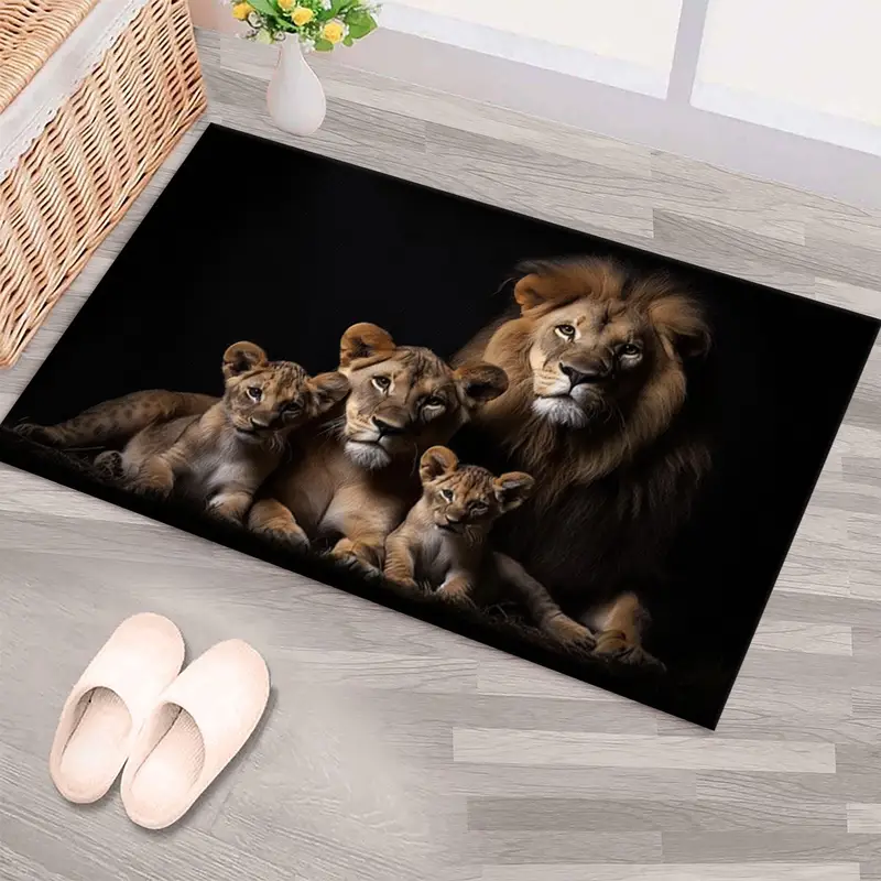 ライオンファミリー モダンプリントラグ ブラック ロフト用パーソナライズギフト