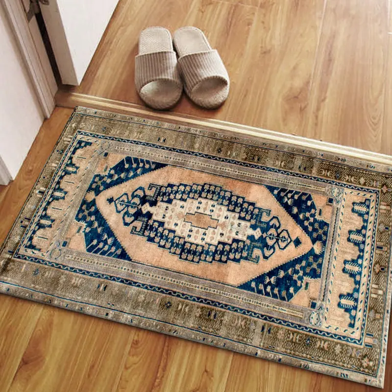 ヴィンテージメダリオンプリントラグ、エスニックデザイン、ソフトタッチ生地