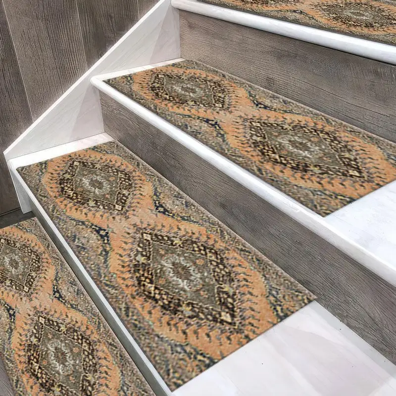 オレンジボヘミアンプリントラグ:ソフトトーン、トレンディなボヘミアンステップラグ