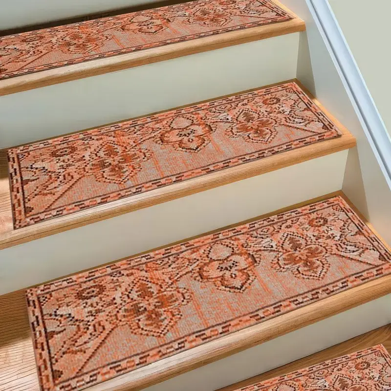 幾何学模様プリントラグ:モダンキリムステップラグ