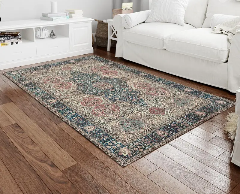 グリーン & ベージュの花柄ヴィンテージ デザイン プリント ラグ - 時代を超越したエレガンス