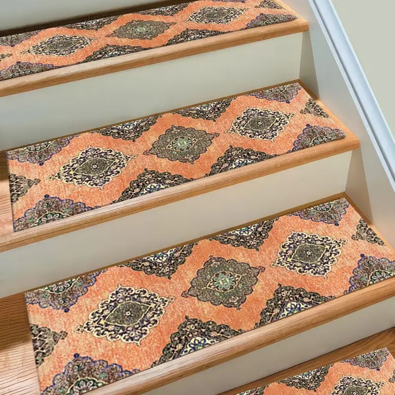 ヴィンテージトルコデザインプリントラグ:オレンジ、ブルー、グリーンセクション