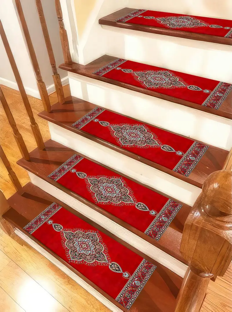 レッドエスニックメダリオンプリントラグ:モダンな住宅のための鮮やかなステップラグ