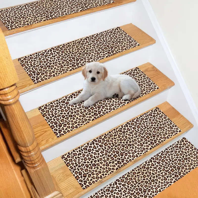 ブラウンヒョウ柄ステップラグ - ロフト風のモダンな装飾