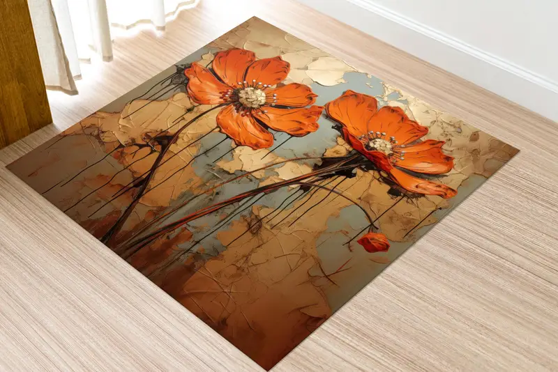 デイジーフラワーオレンジ花柄プリントラグ - モダンな抽象デザイン