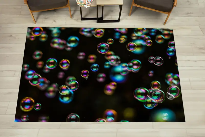 泡のないブラックとカラフルなモダンなプリントラグ - シックなホームアクセント