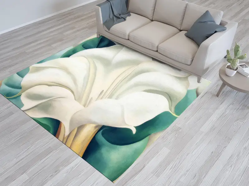 ホワイトフラワー花柄プリントラグ - モダンで豪華なデザイン