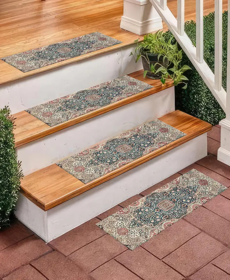 花柄ステップラグ メダリオン&エスニック柄 ソフト...