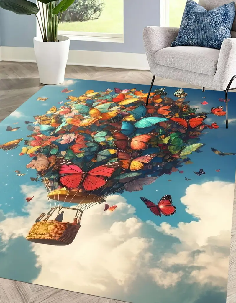 抽象的なエアバルーンバタフライプリントラグ:モダン、カラフル、希望に満ちた