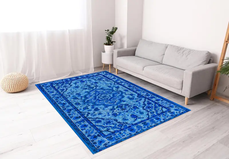 メダリオンプリントヴィンテージラグ:エスニック柄と花柄を組み合わせた