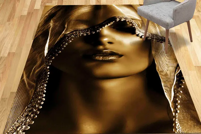 Golden Woman ポートレート プリント ラグ - モダンでシックなホームアクセント