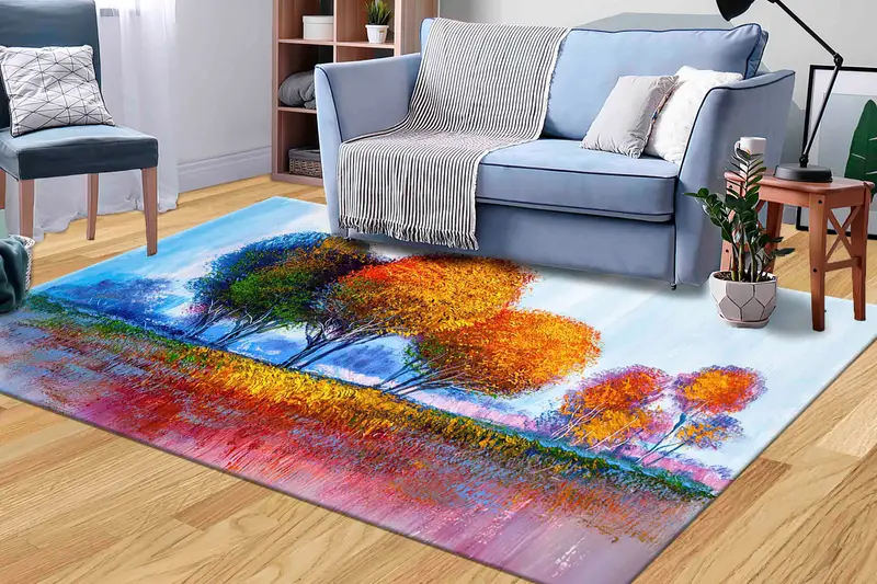 秋の森プリントラグ: 鮮やかな風景の家の装飾
