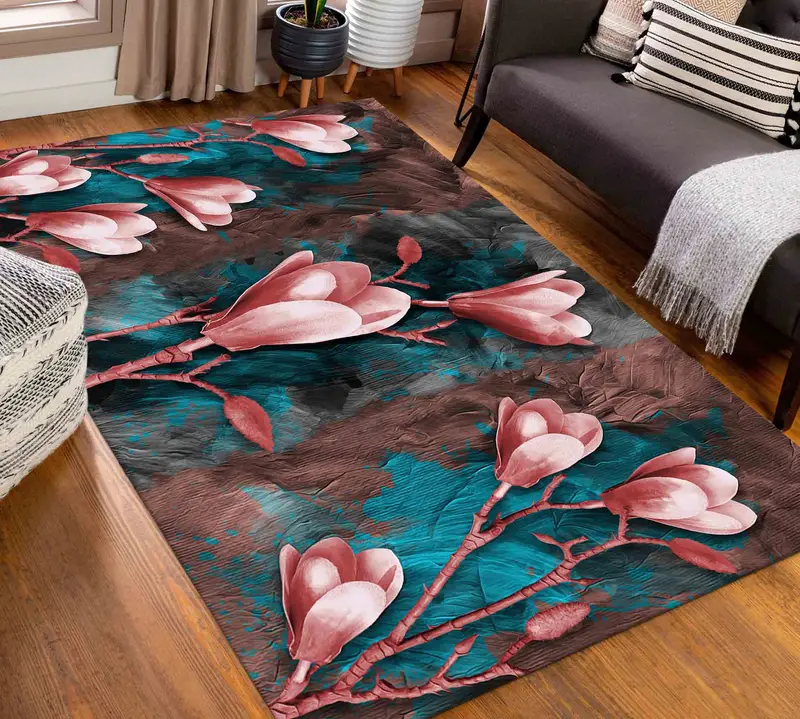 マグノリア ブルーム プリント ラグ: ピンクの花の抽象的なデザイン
